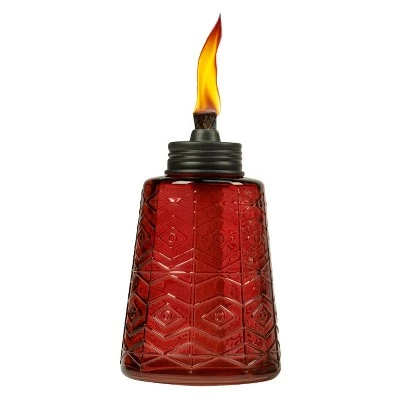 Few things are as enjoyable as dining outside with family and friends. Next time you dine al fresco, gather everyone around your table to experience the warm glow of natural flame lighting. A TIKI Brand Molded Glass Tabletop Torch makes a perfect centerpiece to illuminate your table and your conversations. Group more than one together to create a striking focal point or use individually as colorful accents on tables around your yard or patio. Each 12oz fill delivers up to 5 hours of burn time when used with TIKI Brand Torch Fuel. Available in Red, Clear, and Blue glass, the modern design of these table torches looks great with any style of décor for any holiday party or occasion. TIKI Brand Molded Glass Tabletop Torches are sold separately and come with the 6 inch tall glass vessel, a long-lasting fiberglass wick, and a metal snuffer to extinguish the flame at the end of the night. TIKI Brand Torch Fuel sold separately.