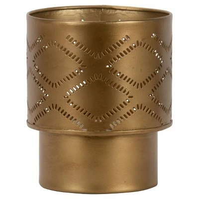 Antique Brass Pierced Metal Pillar Candle Holder – Foreside Home & Garden