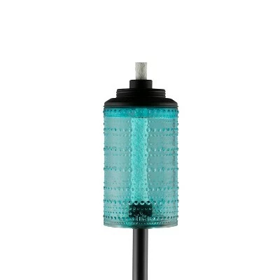 Easily add light to your yard, garden or table and enjoy natural flame ambiance in your backyard with the TIKI® Brand Easy Install Carnival Glass TIKI Torch in Blue. The easy install lever provides a simple, one-step installation. This versatile torch is easy to put in and transforms from a 68-inch full size torch to a 53-inch mid-size garden torch. Remove the metal pole completely, and it becomes a centerpiece for your outdoor dining table or end table. The TIKI® Brand Easy Install Carnival Glass TIKI Torch comes complete with a glass vessel, 4-piece pole with easy install lever, long-lasting wick and metal snuffer to safely extinguish the flame. For proven mosquito repellency*, use with TIKI® Brand BiteFighter® Torch Fuel, and enjoy up to 12 hours of burn time with each 18-ounce fill. TIKI® Brand BiteFighter® Torch Fuel sold separately. *Based on studies using CO2-emitting mosquito traps which demonstrated over 50% reduction in captured mosquitoes compared to untreated controls. Use as directed. Efficacy may be affected by weather conditions, torch placement, and individual physical factors.