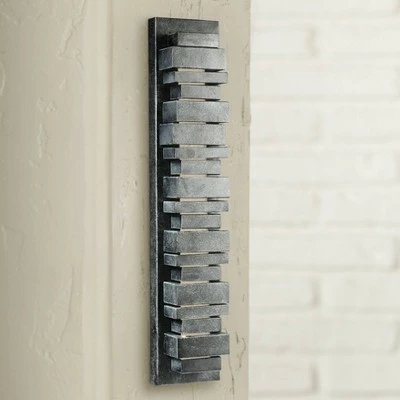 Energy efficient and stylish, this contemporary 26″ high LED outdoor wall light looks great on the front porch or in the backyard. Featuring a brick-like faade, the sconce is finished in a natural-looking dark weathered zinc. A white glass shade protects the LED array and creates a diffuse glow. Made from steel with the durability you need outdoors, this sconce is both stylish and functional.