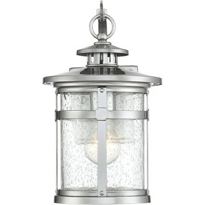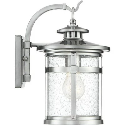 The Callaway collection of outdoor lighting offers a modern update on traditional lantern-style fixtures. This outdoor wall light comes in a shining chrome finish steel frame, with clear seedy glass for a charming rain-flecked look. This contemporary fixture is perfect for lighting up your entryway, porch, or patio space.
