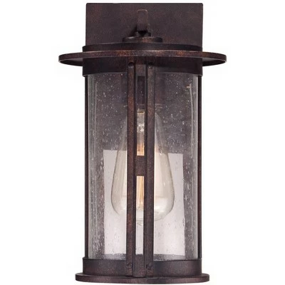 Franklin Iron Works Vintage Industrial Outdoor Wall Light Fixture Bronze Lantern 10 1/2″ Seeded Glass Cylinder for Exterior Porch