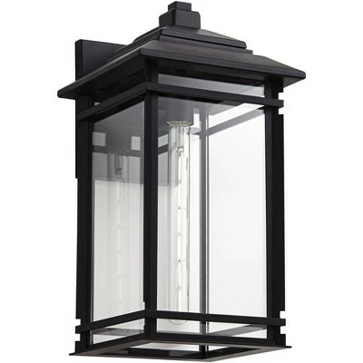 John Timberland Mission Outdoor Wall Light Fixture Matte Black Metal 19″ Clear Glass Shade Exterior House Porch Patio Deck Home