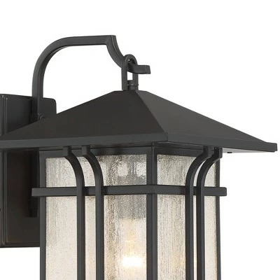 Update your home with this handsome outdoor wall light from the Syon collection by John Timberland. Inspired by Mission Craftsman styles, it comes in a rectangular lantern-like frame painted in a deep bronze finish. Seedy glass panels give the impression of a rain-washed day. Perfect for patio spaces and front door areas.