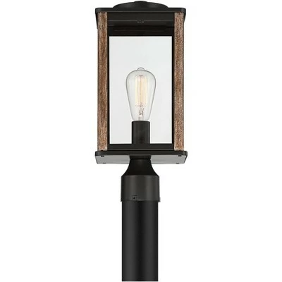 Get an updated farmhouse look with the Wordsworth Field collection by John Timberland. This outdoor post light comes in a steel rectangular frame, covered in dark bronze and wood grain finishes that combine to form a classy rustic-industrial theme. Handsome and versatile, this post light is perfect for a curbside or garden area.