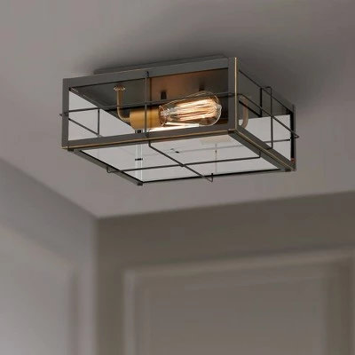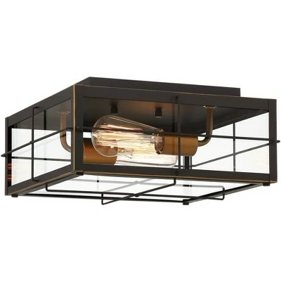 - Modern industrial two-light flushmount ceiling light from the Sunderland collection by John Timberland.