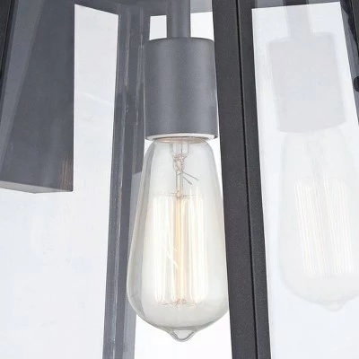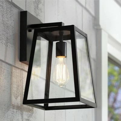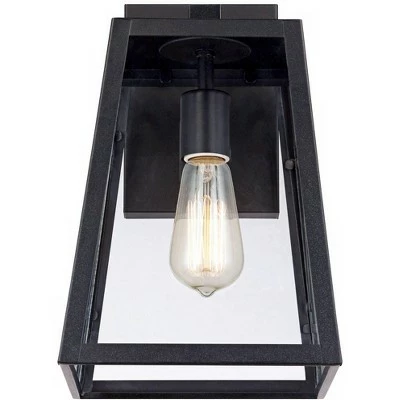 Brighten up your home’s exterior with this handsome outdoor wall light from the Arrington collection by John Timberland. This updated industrial design comes in a tapering black frame with a sleek, straight-lined look. Clear glass panels offer a full view of the beautiful vintage Edison style bulb that is included with purchase. Wet location outdoor rated. Vertical installation and wall mount only.