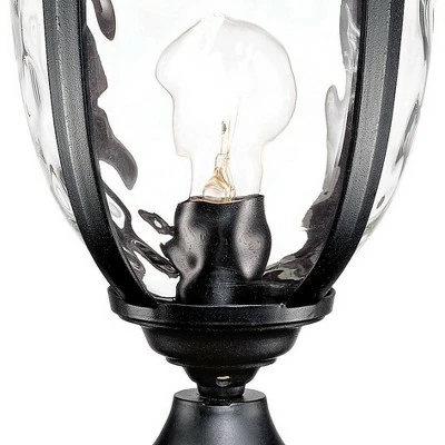 Brighten up your walkways, pathways, and driveways with this outdoor post light from the Bellagio collection. This traditional design comes in a texturized black finish and has clear hammered decorative glass for a sophisticated look. Use it to add a warm, welcoming glow to your home. Includes a pier mount adapter for surface-mount installation.