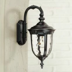 John Timberland Traditional Outdoor Wall Light Fixture Black 16.5″ Hammered Glass for Exterior Porch Patio