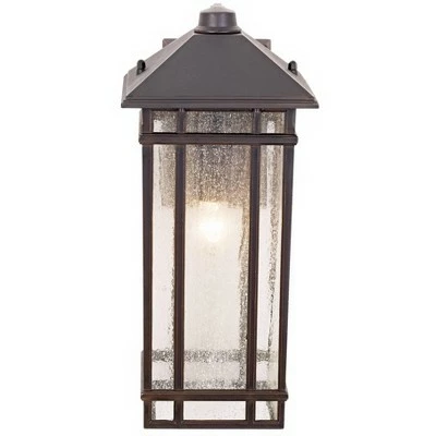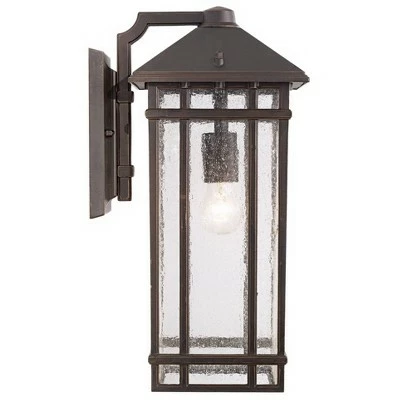 Add Americana styling from the Kathy Ireland Home J du J Sierra Craftsman Collection to your home. This outdoor wall light design was inspired by classic Arts and Crafts looks from the turn of the century. It features a rubbed bronze finish with decorative seedy glass. With its clean lines and striking look, this is perfect for adding curb appeal to your home.