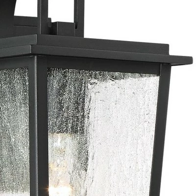 This modern outdoor wall light from the Cantebury collection by Minka Lavery is highlighted by crisp lines and a classic silhouette. The sand black finish and burnt gold finish candle sleeves offer a handsome contrast to this design, while the clear seeded glass shade allows the light to shine bright and clear. It’s a stylish way to light up a back porch or backyard patio.