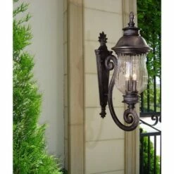 - Four-light outdoor hanging light from the Chateau Grande collection by Minka Lavery.