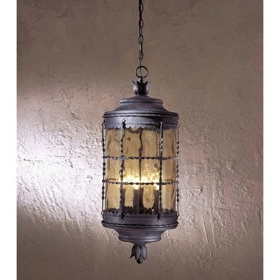 Lantern lighting in a Mediterranean Iron finish with wavy glass for an authentic traditional look by Minka Lavery. Rated for outdoor use, may also be used indoors in an entry way or foyer.