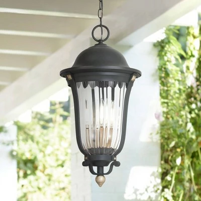 - Traditional style outdoor hanging light with contemporary influence, from the Peale Street collection by Minka Lavery.