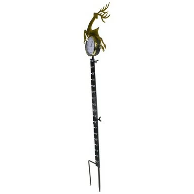 This beautiful reindeer is perfect to add some holiday cheer to your back yard as well as to measure the amount of snow that falls and the temperature for that day. Perfect to match any already existing holiday yard decor. Features:Reindeer snow and temperature measuring tool Comes with a stake so you can put it in the groundMeasures the amount of snow and the temperatureFeatures a gold reindeer on topPerfect to display around holiday time Dimensions: 32”H x 7.5”W x 1.25”DMaterial(s): metal