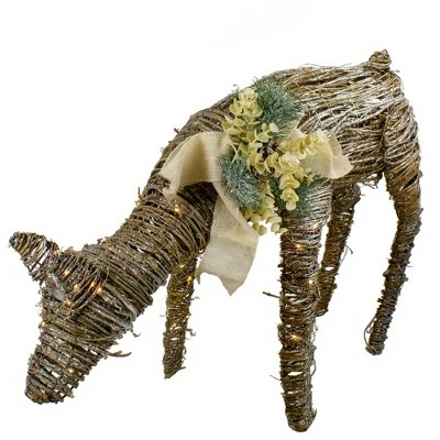 Warm your heart and home with this decoration. This fawn is a perfect addition to a holiday light display creating a winter wonderland. It is sure to light up your yard and bring in the holiday cheer.Product Features: 100 clear lightsBulb size: mini56″ brown lead cordUL listed for indoor or outdoor useAdditional Product Features:Super bright bulbsCool to the touchLED lights use 90% less energyEasy assembly – no tools requiredComes with replacement bulbs, spare fuses, ties and ground stakesContains end-to-end connectors which allow you to connect multiple lighted items together (not to exceed 210 watts)Wire gauge: 22120 volts, 60 hertz, .34 amps, 40.8 wattsDimensions: 24”H x 38″W x 8″DMaterial(s): fabric/metal/plastic/glass bulbs/wire