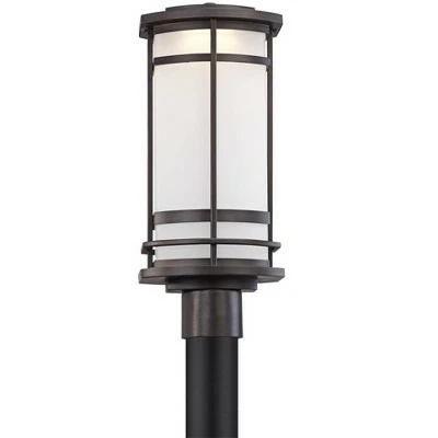 Possini Euro Design Modern Outdoor Post Light Fixture Bronze Metal 19″ Etched Glass Shade for Exterior House Porch Patio Outside