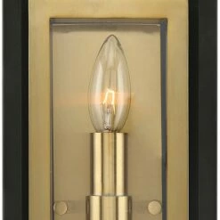 Possini Euro Design Modern Outdoor Wall Light Fixture Black Gold 14″ Clear Glass for Exterior House Porch Patio Deck