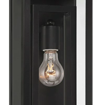 From Possini Euro Design, the handsome Double Box upright outdoor wall fixture features an outer frame of black finish metal and clear glass. Inside, a second frame of clear glass and an included Edison-style bulb offer a vintage touch. Together, they create a wall light that is worth your attention and will enhance your home’s exterior spaces.
