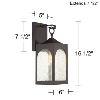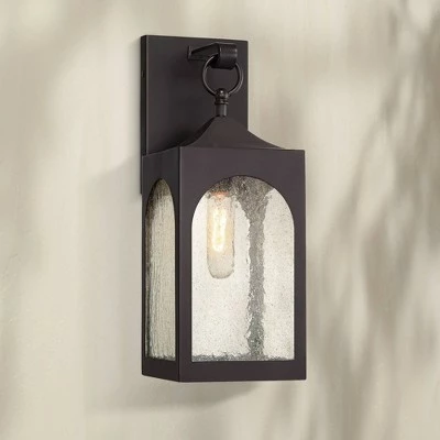 A geometric shape with gentle curves creates the silhouette of this charming outdoor wall light. A bronze finish and seedy glass create a look that seems weathered, but provides a contemporary feel. The illumination from a single bulb is gently diffused, perfect for flanking the sides of an entryway or enhancing a patio space.