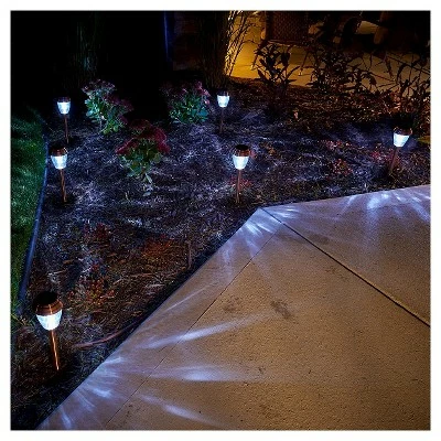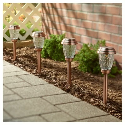 Illuminate your walkway, driveway or garden effortlessly with these Smart Living Charleston Copper-Finish Pathway Lights from Smart Solar. Featuring six copper-finished stake lights, this stainless-steel set will make your exterior area pop at any hour of the day. Charges by day, illuminates automatically by night, powered by integral solar panels. 1 energy saving cool white LED in each light, 5 lumens per light. No operating costs and no wiring, simply install and enjoy!