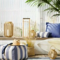 - Rattan outdoor lantern adds convenient outdoor lighting