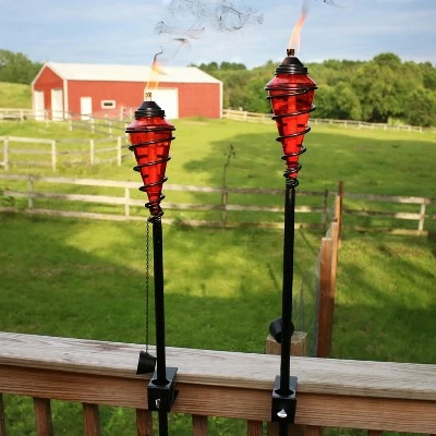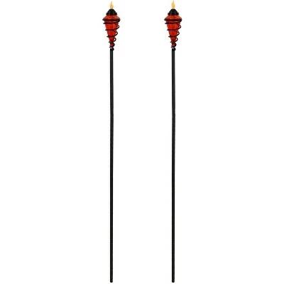 Sunnydaze Decor Sunnydaze Outdoor Adjustable Height Glass and Metal Swirl Patio and Lawn Citronella Torch Set – Red – 2pk